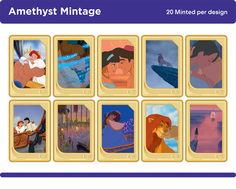 Step back into the Disney Renaissance, the decade that redefined animation and inspired generations. We've captured the timeless artistry of classics like Disney’s The Lion King, Aladdin, Beauty and the Beast, Pocahontas, and The Little Mermaid, all struck in precious metal with expert craftsmanship and limited mintage.