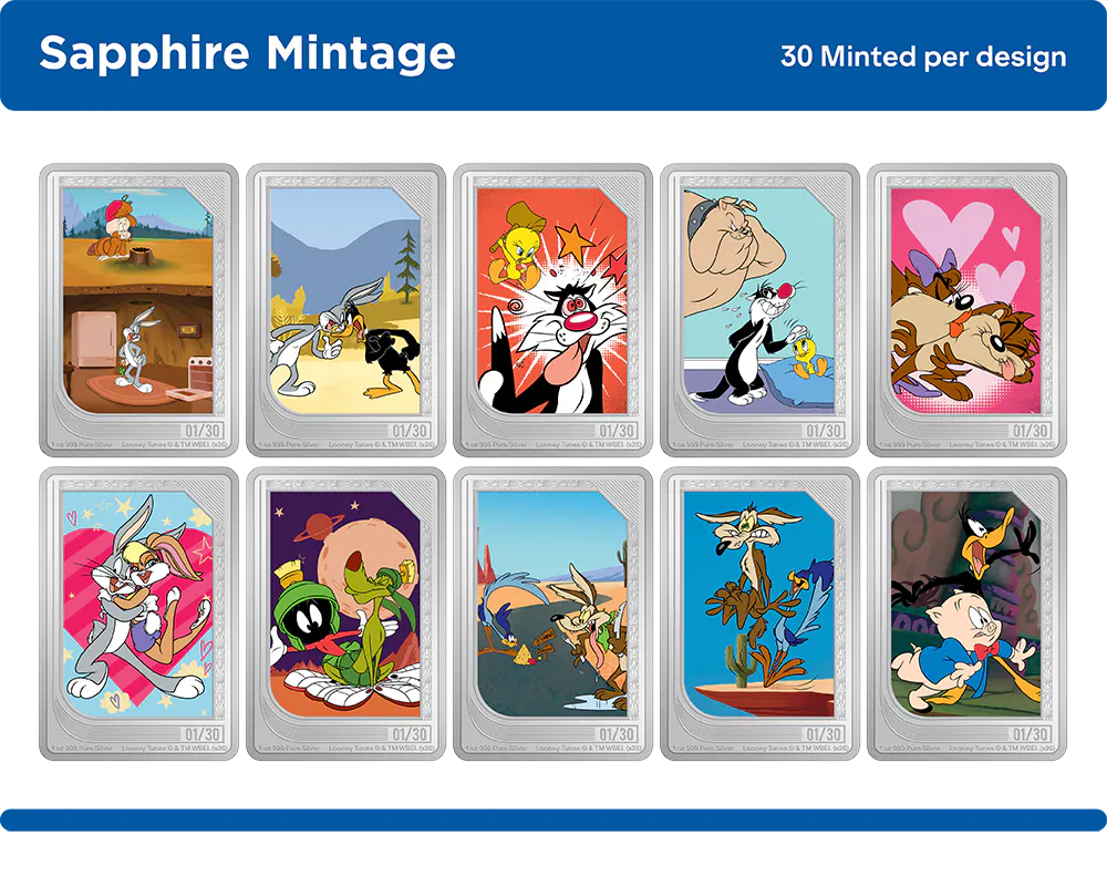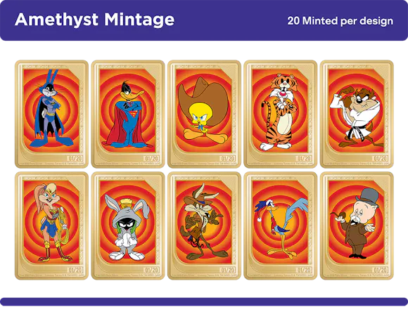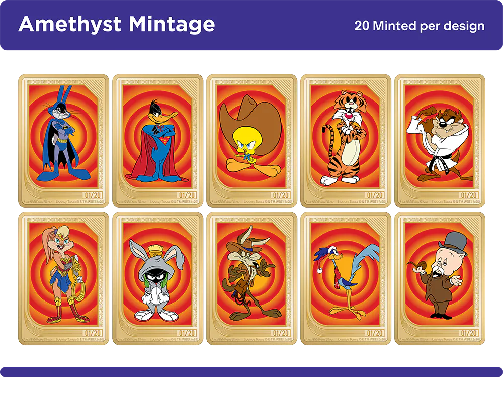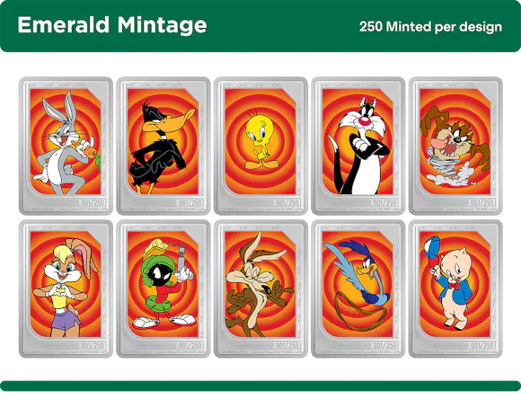 Cartoon chaos meets precious metals with our Looney Tunes Trading Coins. Collectible sets feature Bugs, Tweety, Sylvester, and all your favorite Looney Tunes characters, from gold-gilded costumes to rib-tickling silver antics.