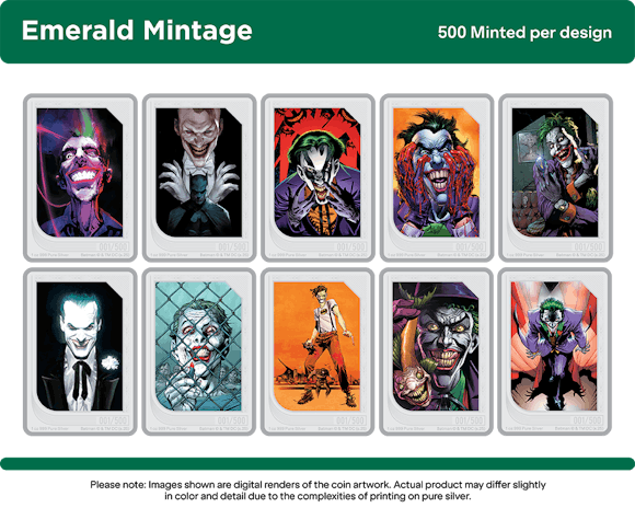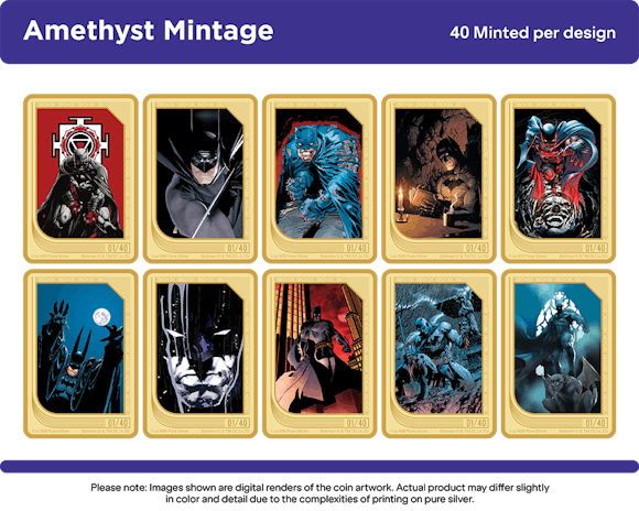 Each box, sealed with anti-tamper tape, holds two secret coins inside. Sets 1-5 feature dynamic depictions of DC’s most iconic characters. 1oz of 999 pure silver, the coins highlight different art styles and iterations, capturing the evolution of these legends.