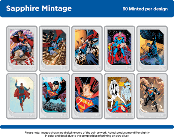 Set 6 includes two pure gold coins, limited to just 10 each, which are inspired by legendary story arcs. One lucky DC fan will find the ultimate chase: a 1 of 1 capturing the Man of Steel in a powerful moment on 1oz 9999 pure gold. Each coin in this release tells a powerful story. What will your box unveil?